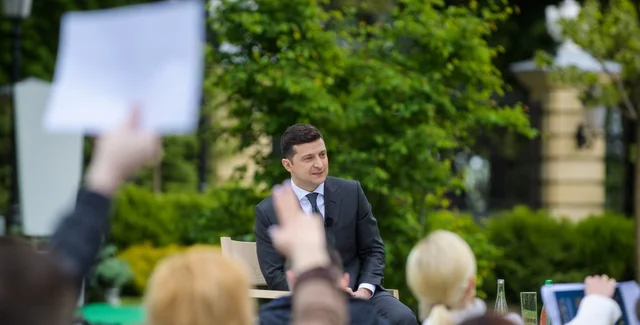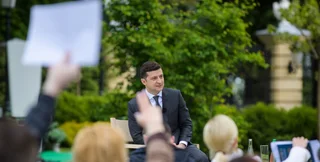 - В парковой зоне Мариинского дворца проходит пресс-конференция президента Владимира Зеленского по итогам первого года пребывания на посту главы государства.