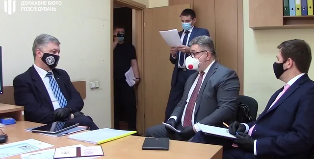 О подозрении пятому президенту сообщили прокуроры Офиса генпрокурора, хотя защита Порошенко утверждает, что это должна была сделать лично генпрокурор Ирина Венедиктова