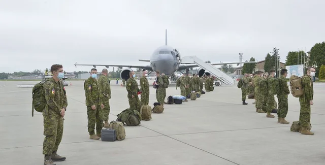 Прибывшие канадские военнослужащие в настоящее время находятся на обязательной 14-дневной изоляции, прежде чем присоединиться к миссии.