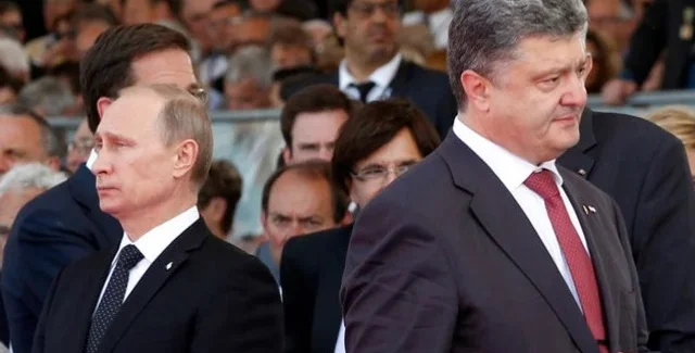 В начале мужчины с голосами похожими на Порошенко и Путина обсуждают вопрос миротворцев на Донбассе.
