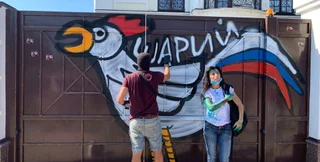 На воротах дома участники акции нарисовали петуха, российский флаг, написали "Кацуба + Шарий = Россия", обклеили забор изображениями Анатолия Шария с надписью "Стоп Вата" и зажгли файеры.