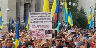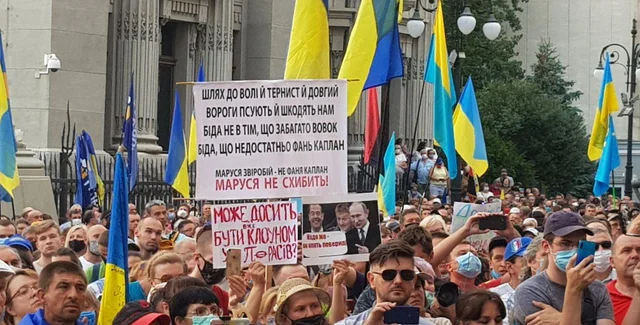 Организаторы акции обвиняют президента Владимира Зеленского в госизмене и заявляют, что "украинская армия атакована с тыла".