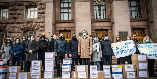 Киевляне под КГГА напомнили Кличко о его предвыборных обещаниях