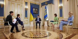 Президент Украины Владимир Зеленский дал интервью четырем украинским телеканалам. Об этом сообщает Офис президента.