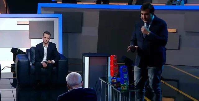 Председатель исполкома Нацсовета реформ Украины Михеил Саакашвили принес в студию "Ток-шоу № 1 Василия Голованова" детские кубики, с помощью которых пытался показать, как крадут деньги украинцев бюрократия и коррупция.