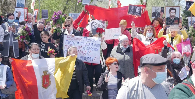 Сегодня, 9 мая, участники шествия "Бессмертный полк" в Одессе пели советскую песню "Вставай, страна огромная" и скандировали различные кричалки, в том числе — "Одесса — русский город", "Вон из Одессы, бандеровские бесы", "Фашизм не пройдет", "Донбасс, мы с тобой". Об этом рассказывает местный портал 048.ua.