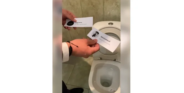 "Та вот, хочу г**но смыть. "Через плечо", "Легитимный" и "Картель", — сказал Качура, бросил в унитаз листики бумаги, на которых написаны названия этих каналов, и спустил воду.