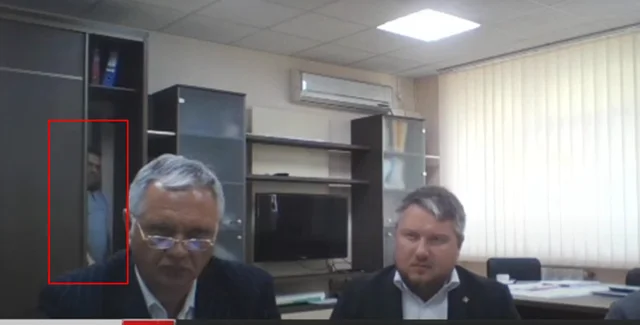 Во время онлайн-совещания по реализации инфраструктурных проектов, которое проводил т.н. "глава Крыма" Сергей Аксенов, за спиной докладчика — т.н. "министра транспорта" полуострова Евгения Исакова — начала неспешно открываться дверь, похожая на дверь шкафа-купе, после чего из-за нее выглянул человек. Это попало на трансляцию телеканала "Крым 24".