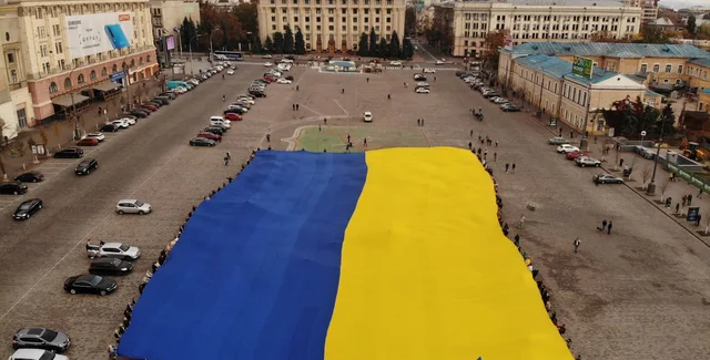 Флаг Украины на площади Свободы в Харькове, октябрь 2020 года | Фото: Politeka.net