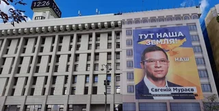 В пятницу, 3 сентября, на Доме профсоюзов, который расположен на Майдане Независимости в Киеве, повесили рекламный баннер, на котором запечатлен лидер партии "Наши" Евгений Мураев, логотип принадлежащего ему телеканала "Наш" и надпись "Тут наша земля" на фоне украинского флага. Об этом сообщили в "Национальном музее революции достоинства".