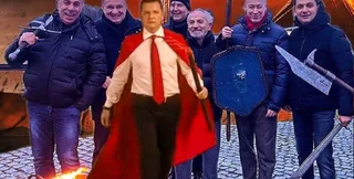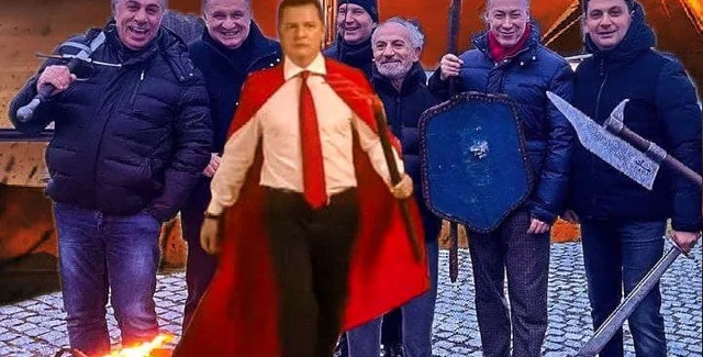 Оказавшихся на фото также представляли в разных ролях. В одном из мемов их изобразили в образе героев вселенной "Властелина колец", которые следовали за предводителем — главой "Радикальной партии" Олегом Ляшко.