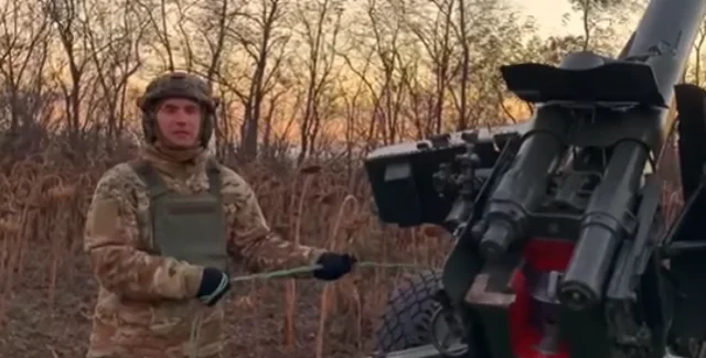 Журналист Юрий Бутусов выстрелил из гаубицы "Д-20" | Фото: Скриншот