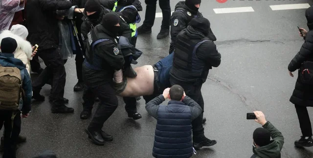 В комментарии "Укринформу" пресс-офицер Печерского райуправления Нацполиции Киева Оксана Тищенко уточнила, что правоохранители составили протокол на одного мужчину административный протокол за нарушение порядка проведения митингов.