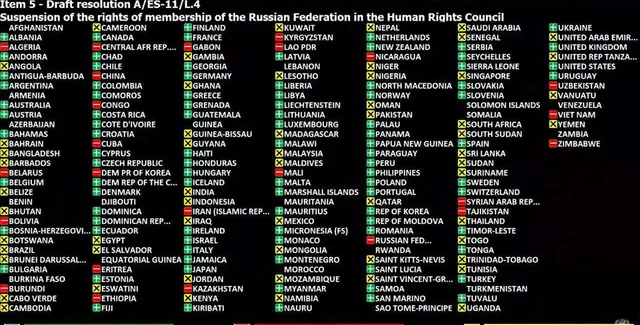 - Во-первых, действия России в Буче, Гостомеле, Мариуполе настолько ужасны, что даже ее бывшие союзники если не открыто выступают против нее, то воздержались. То есть речь о тех странах, которые Россия специально настраивает против их бывших метрополий. И это несмотря на то, что накануне голосования Россия предупреждала, что голосование за ее исключение будет рассматриваться как политический акт недружественного отношения к ней.