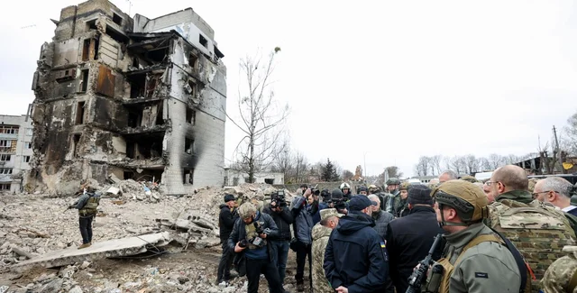 Увидели зверства войны: президенты четырех стран посетили разбомбленную Бородянку (фото)