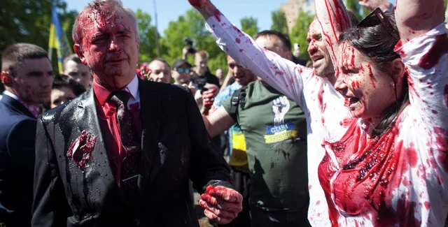 Облитый украинцами в Варшаве посол РФ назвал резню в Буче инсценировкой (видео)