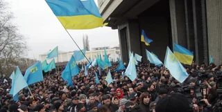 Проукраинские силы собрались возле крымского парламента и в итоге добились отсрочки заседания депутатов, в ходе которого планировалось рассмотрения вопроса относительно политического будущего полуострова.