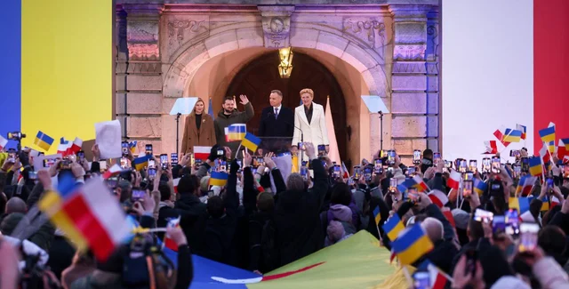 По словам Зеленского, когда в каждый оккупированный российскими военными город возвращается украинский флаг, крепнет и польский флаг.