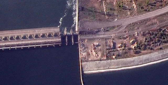 Подрыв Каховской ГЭС (спутниковый снимок) | Фото: Maxar Technologies