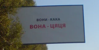 Кстати, в Харькове появились еще более вызывающие билборды: "Вони – кака, вона – цяця".