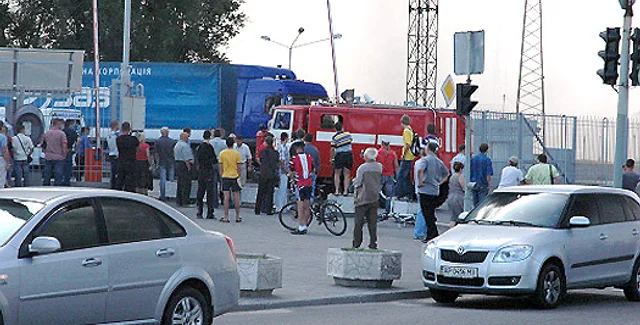 Готовые автомобили выгоняют с территории завода. В связи с ЧП в Запорожье перекрыта Набережная магистраль (от ул. Грязнова до Южного микрорайона). Это одна из 2 магистралей города, проходящих через всю левобережную часть Запорожья.