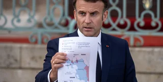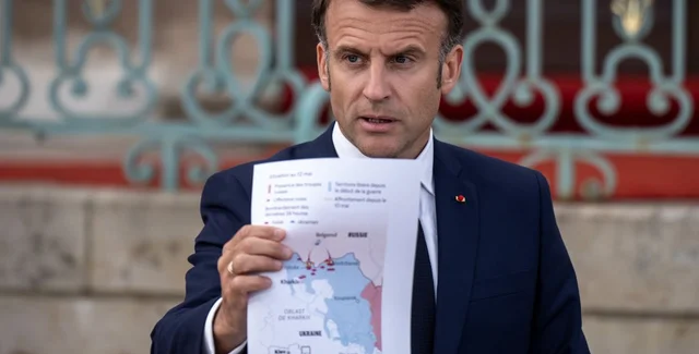 Президент Франции Эммануэль Макрон демонстрирует карту атак РФ на Украину | Фото: Getty Images