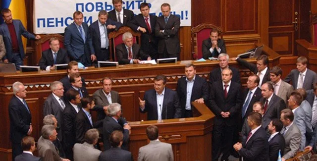 При этом парламентская трибуна не была заблокирована, однако регионалы заблокировали стульями вход в президиум Верховной рады.