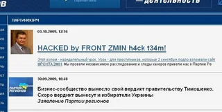 В настоящее время официальный сайт Партии регионов пребывает во взломанном состоянии