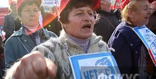 Коммунисты стоят под красными партийными флагами и держат в руках лозунги "Фашизм не пройдет!".