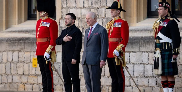 Как сообщает The Guardian, в пятницу король Чарльз принял президента Владимира Зеленского в Виндзорском замке. Во время прибытия украинского президента прозвучал национальный гимн Украины, а почетный караул отдал ему королевский салют.