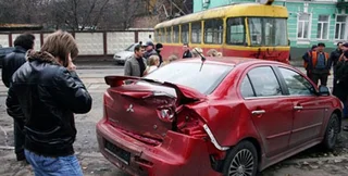 Вчера на улице Фрунзе около часа дня трамвайный вагон на ходу соскочил с рельсов и начал сметать все на своем пути. Перед тем как остановиться, он разбил две машины и травмировал пятерых человек