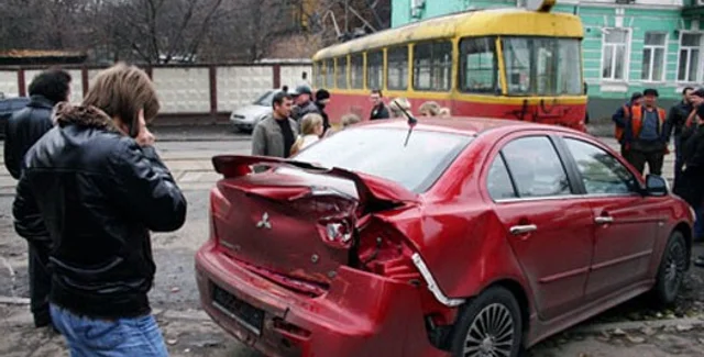 Далее трамвай понесся на другую сторону улицы, задел столб, протаранил еще одно авто и остановился.