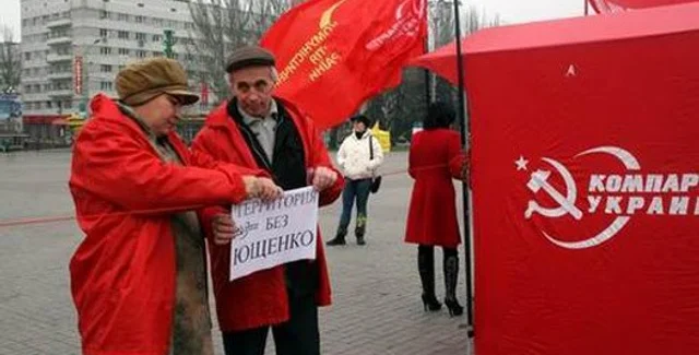 В знак протеста против визита президента в Донецк, донецкая областная организация КПУ объявила площадь Ленина в центре города "территорией без Ющенко".