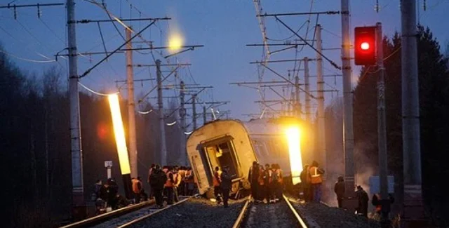 По предварительным данным, взрыв произошел под электровозом, однако скорость поезда была настолько велика (около 200 км/час), по инерции почти весь состав проскочил разрушенное полотно, с рельсов сошли последние два вагона.
