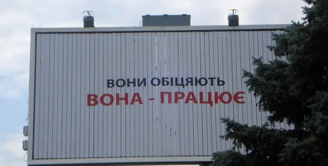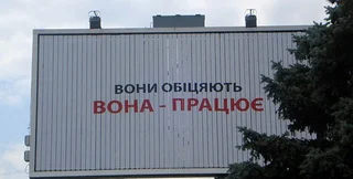 "Вона" была наклеена на билборды Ющенко ночью, сообщает ZAXID.NET.