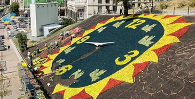 Цветочные часы на склоне Институтской возле Майдана демонтировали. Стрелки сняли, а растения, из которых был сделан циферблат, перевезли в теплицы "Киевзеленстроя" и законсервировали до весны