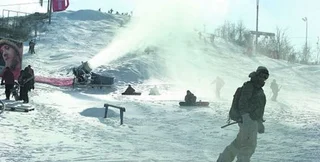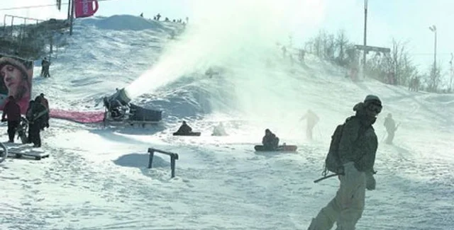 "Еще дней десять, и вся гора будет завалена снегом. А сезон откроем во вторник. За час одна пушка выстреливает 120 кубов снега, а всего их три, все беспрерывно работают", – рассказал Газете по-киевски инженер горнолыжного комплекса Виталий Ходюк.