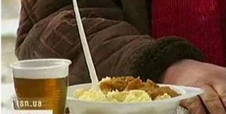 "Я большой специалист, не хочу хвастаться. Газопроводы варил у Ющенко. А теперь никому такой не нужен", - рассказал человек за тарелкой каши.