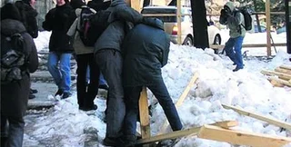 Разозлившись, они разобрали строительный забор и принесли его остатки под мэрию. Вчера в милиции официально не комментировали инцидент, пишет газета Сегодня.
