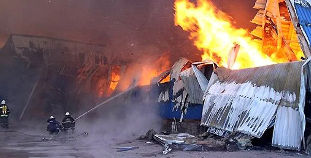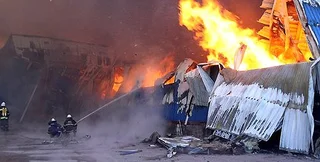 Он отметил, что борьбу с огнем усложняют удаленность гидрантов, ближайший из которых находится в полутора километрах от места возгорания, а также оплавившийся материал построек комбината.