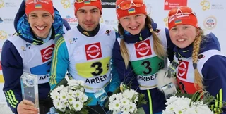 Украинская команда биатлонистов заняла первое место в смешанной эстафете на этапе Кубка IBU (International Biathlon Union) в немецком Арбере, сообщает пресс-служба Национального олимпийского комитета Украины.