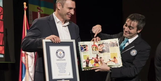Также Виталий и Владимир Кличко получили сертификат Книги рекордов Гиннесса за то, что братья выиграли 40 боев в супертяжелом весе с 26 июня 1999 по 25 апреля 2015 года.
