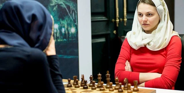 Украинская шахматистка в первой партии играла черными и одержала победу против 32-летней российской шахматистки, которая в 2008 году получила титул чемпионки мира по шахматам.