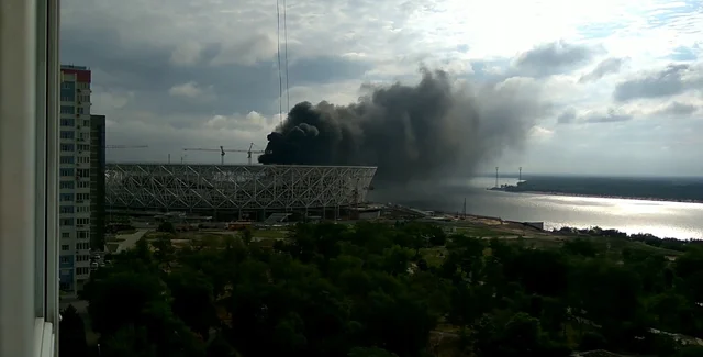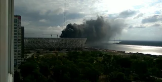 14 июня на стадионе "Волгоград-Арена" произошел крупный пожар: загорелись стройматериалы. Огромный черный столб дыма был виден в городе издалека.