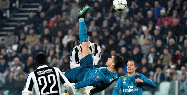 В первом матче четвертьфинала Лиги чемпионов против "Ювентуса" в Турине Роналду, будучи игроком мадридского "Реала", нанес точный удар в падении через себя, чем вызвал аплодисменты болельщиков даже итальянского клуба.