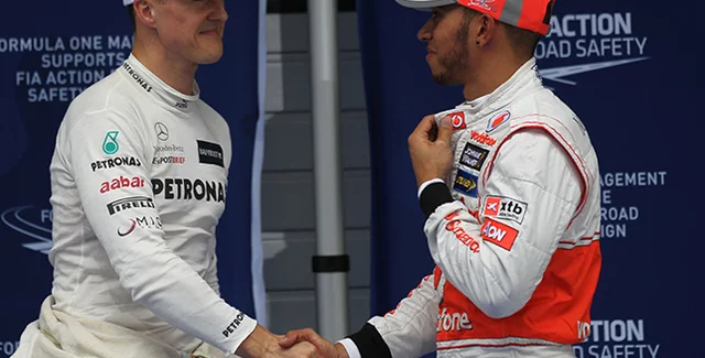 Англичанин Льюис Хэмилтон считает, что до легендарного немца ему еще далеко