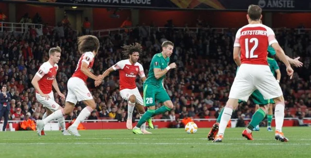 После пятого тура наша команда занимает третье место в квартете Е, опережая только за сет лучшей разницы забитых и пропущенных мячей "Карабах" из Азербайджана. А в плей-офф Лиги Европы из этой группы вполне ожидаемо вышли "Арсенал" и "Спортинг" из Лиссабона.