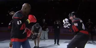 56-летний американец провел шуточный поединок с хоккеистом Джорданом Мартинуком, которого первым же ударом отправил в нокаут.