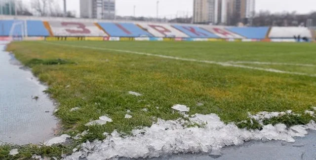 Стадион в Кропивницком не подготовили к игре: работу подогрева поля не обеспечили, из-за чего оно покрылось льдом.