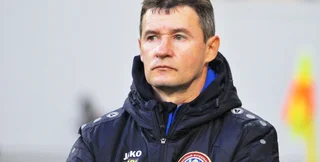 Тренер ФК "Львов" Виталий Шумский не понимает, за что получил желтую карточку, и требует у бригады арбитров объяснения.